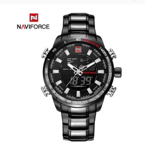 Naviforce Men’s Quartz Dual Time Stainless Steel Watch NF9093 BBW