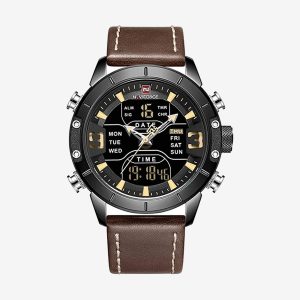 Naviforce Men’s Quartz Dual Time Leather Belt Watch NF9153BYDBN